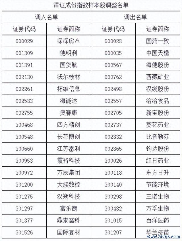 从调整的具体个股名单来看,深证成份指数更换17只样本,深深房A、德明利、长芯博创等调入指数。