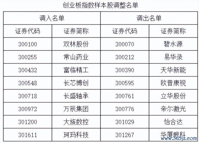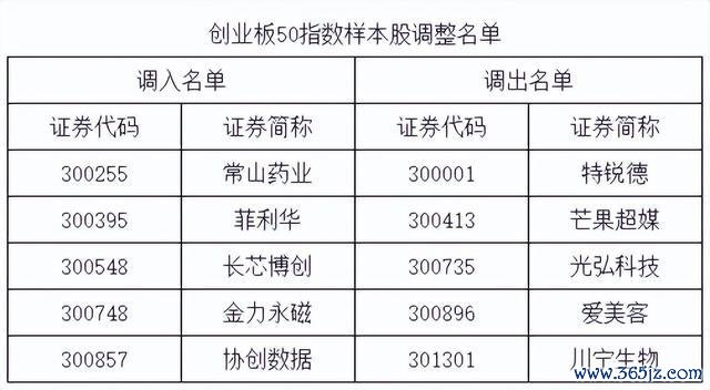创业板50指数更换5只样本,常山药业、菲利华、长芯博创、金力永磁、协创数据等调入指数。