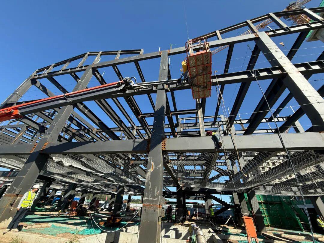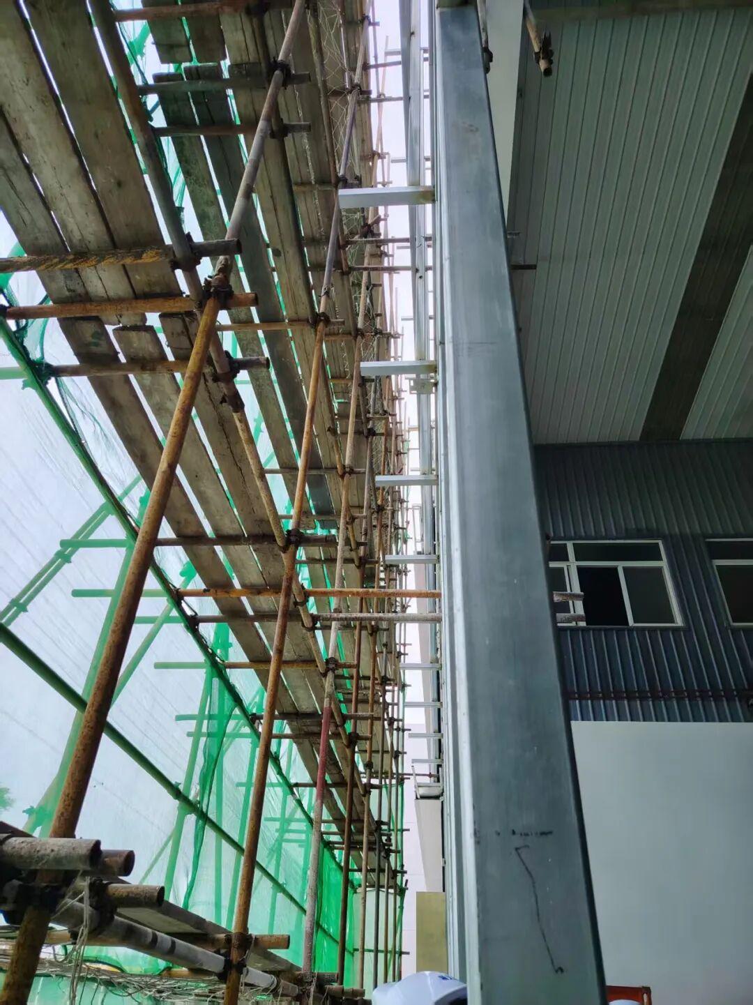 1.钢结构已搭设至三层,一层部分区域及二层未及时挂设安全网。