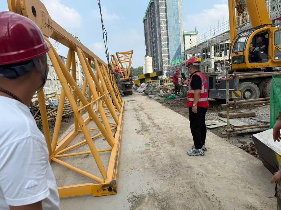 1.14#楼北侧塔吊拆卸时使用的汽车吊钢丝绳多处出现断丝情况,作业前未对吊具和索具进行检查,未确认完好即投入使用。